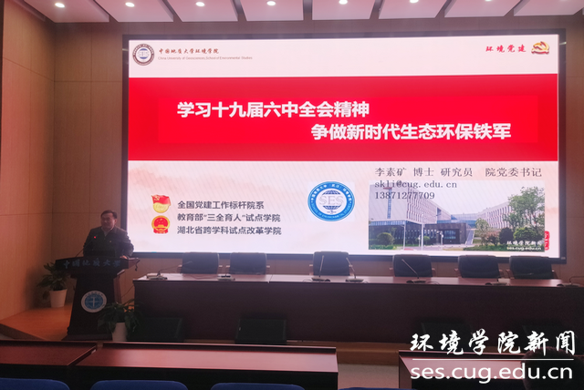2021年11月24日中午,p站视频 第七十一期入党积极分子培训班第一课在科教四楼108报告厅展开。p站视频 党委书记李素矿以“学习十九届六中全会精神,争做新时代生态环保铁军”为题讲授党课。