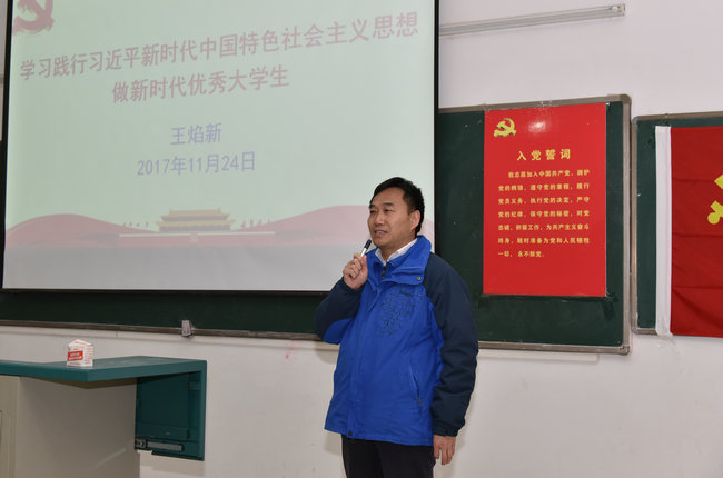 张学海 孟国强)2017年11月24日晚在化学楼一层阶梯教室,王焰新校长以“学习践行习近平新时代中国特色社会主义思想,做新时代优秀大学生”为题讲党课。p站视频