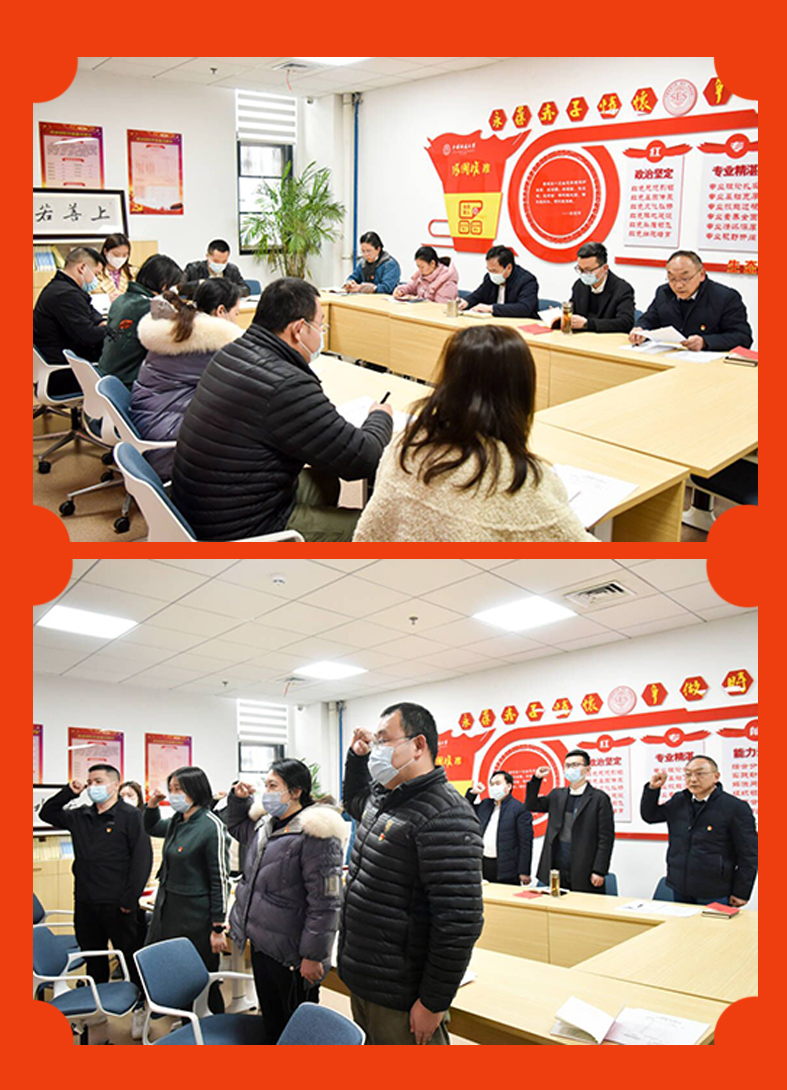 支部党员唱国歌、温誓词。