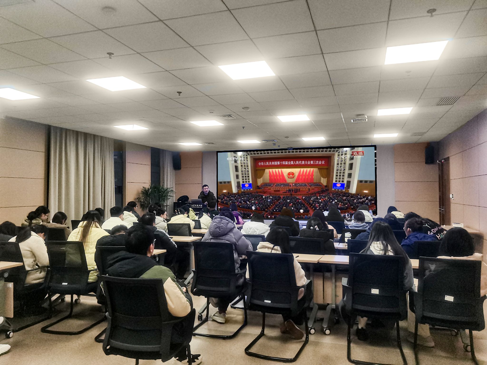 师生高度关注全国两会盛况,通过网络、电视、广播等方式收看收听两会报道,对两会的胜利召开反响热烈。