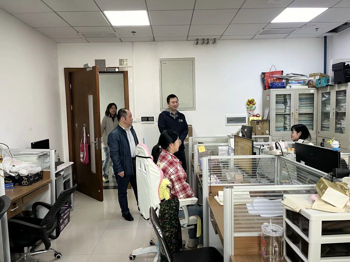 学院党委书记姜明敏、实验教学中心梁莉莉、辅导员赵恩民等检查走访研究生工作间、高温室等教学科研实验室。