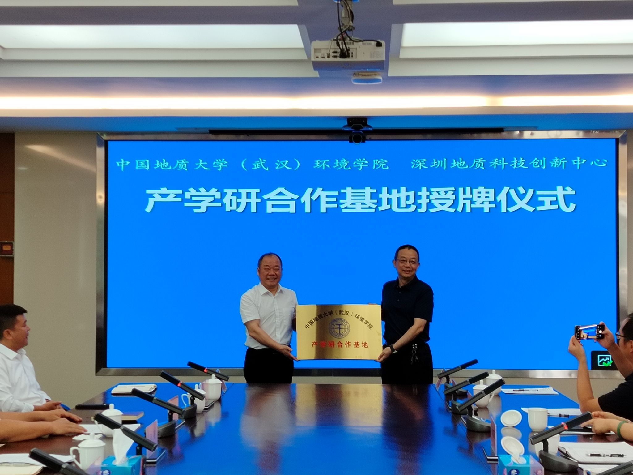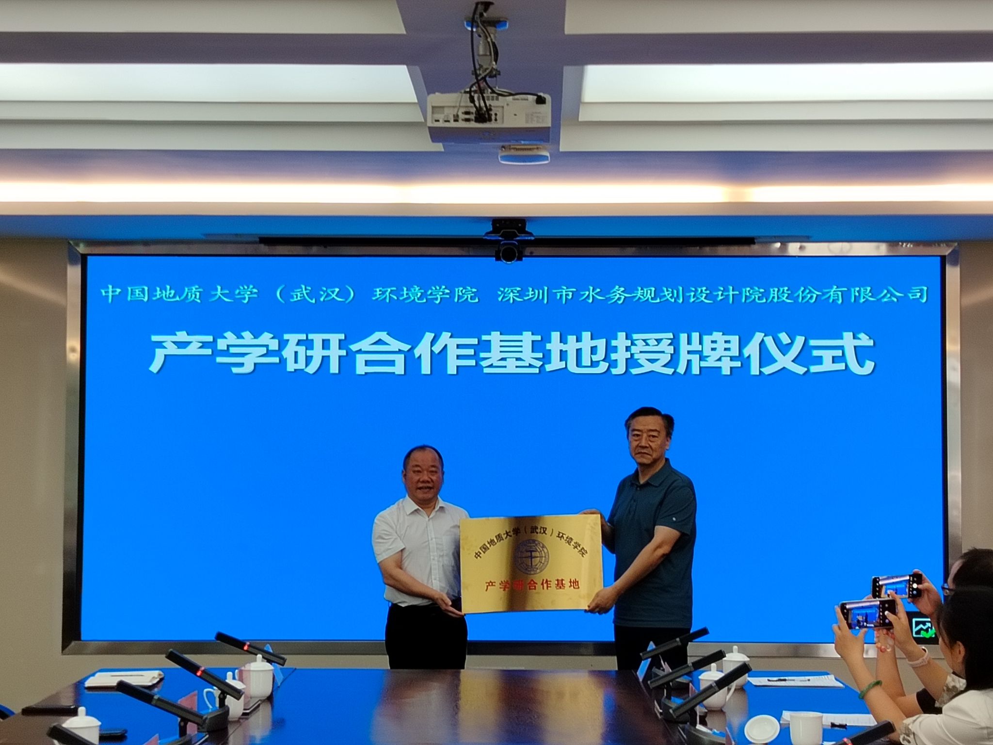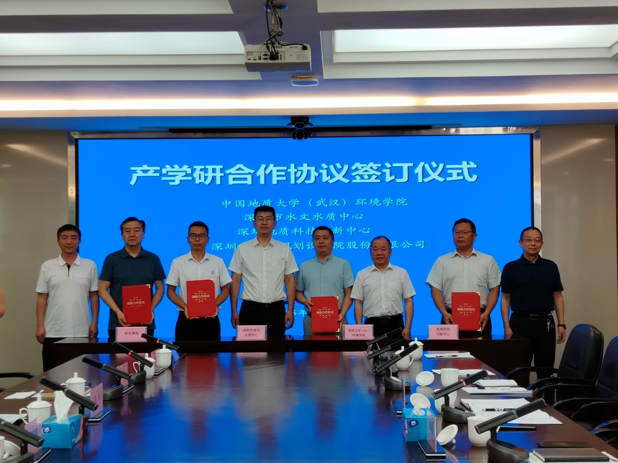 29日上午,学院与深圳市水文水质中心、深圳地质科技创新中心、深圳市水务规划设计院股份有限公司等三家单位共同举行产学研合作交流座谈会。三家单位相关领导出席座谈,深圳市水文水质中心副主任郜银梁主持会议。