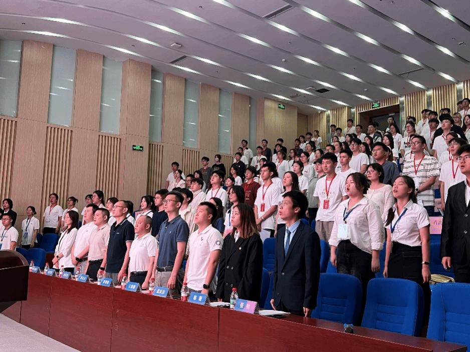 与会人员齐唱《中华人民共和国国歌》,大会在庄严的国歌声中拉开帷幕。