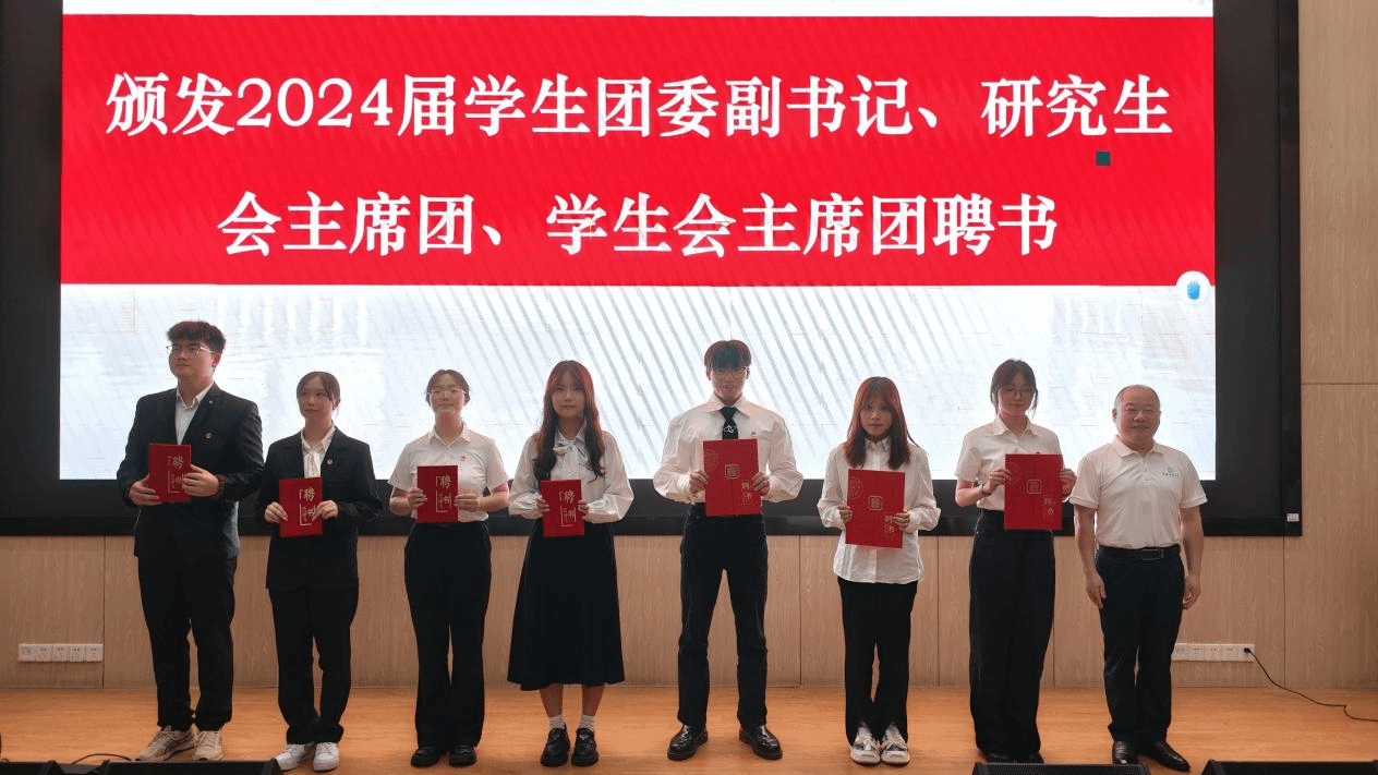 姜明敏为2024届学生团委副书记、研究生会和学生会主席团颁发聘书。