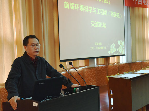 院长马腾、党委书记李素矿,副院长祁士华、副书记朱继,环境科学与工程系全体教师,14-16级环境菁英班的87名本科生参加了会议。本次交流论坛分为开幕式、宣讲会及互动交流三个环节。