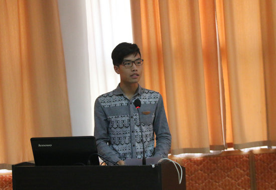 大气科学系青年教师孔少飞教授发言。他与同学们分享了自己的大学生活和成长经历,鼓励同学们在大学期间追求学业和美好生活,要远离恶俗、避免消极,要志存高远,脚踏实地做一个勤奋的地大大气人。