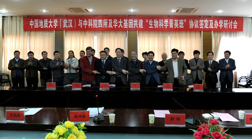 3月24日上午,学校在惠宾楼四层会议室举行共建“生物科学菁英班”协议签订及办学研讨会。参加此次会议的有来自中国科学院微生物研究所、生态环境研究中 心、城市环境研究所、武汉植物园及深圳华大基因研究院五家单位的领导和专家,中国科学院院士殷鸿福、校领导郝翔、王焰新、赖旭龙、万清祥以及校办、教务 处、学工处、p站视频