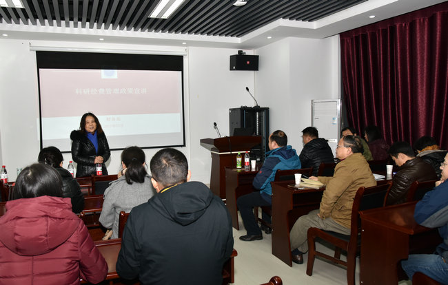 (通讯员左麦枝 编辑张学海)2017年12月14日下在午丹桂苑105室,p站视频 召开全院教职工大会,邀请职能部门领导就科研经费管理政策进行宣讲。财务处处长张玮、科研管理科科长鄢琼伟、会计科科长刘锐军以及科发院重大项目办主任肖平一行来院宣讲,p站视频 全体教职工参加。p站视频 副院长王红梅主持宣讲会。