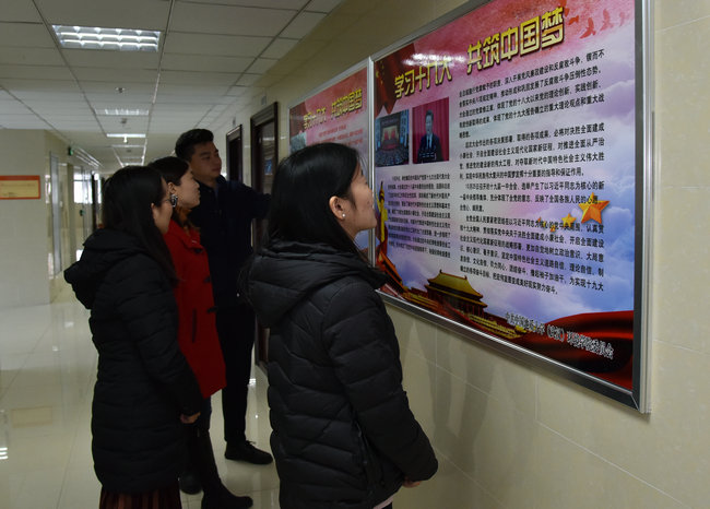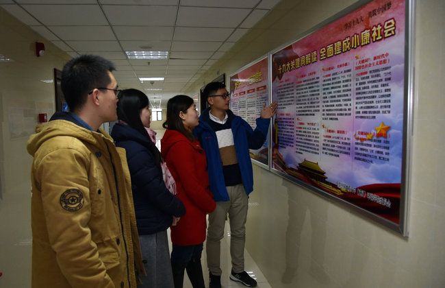 为了更好地学习宣传和贯彻党的十九大精神,p站视频 党委除了组织师生观看十九大开幕式盛况、党委中心组和党支部主题党日专题学习、听党课、撰写学习十九大精神心得体会外,还利用宣传橱窗展板进行了十九大精神的学习宣传。