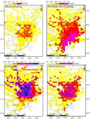 研究发现,PM2.5中PAHs的削减程度(-63%)高于PM2.5本身(-34%)(图1),主要在于污染控制措施对于PM2.5和PAHs不同源的消减程度存在差异。两个阶段大气环流背景(图2)、近地层气象条件存在明显的相似,且两个阶段PAHs均存在明显的老化(图3),上述因素对于PAHs的冬夏季节变化影响显著,但不足以解释PAHs的年际变化。PAHs的浓度降低主要在于源的变化,尤其是油品挥发和燃烧、机动车尾气排放和生物质燃烧的贡献降低明显,但煤燃烧贡献降低较少(图4)。从源区贡献的分布来看(图5),华北平原冬季民用煤燃烧的贡献不容忽视,这也提供了该区域冬季民用燃煤排放污染物可以长距离传输影响长三角地区的直接证据。同时,PAHs的健康风险降低了61%,主要原因在于油品挥发和燃烧的PAHs风险降低(图6)。