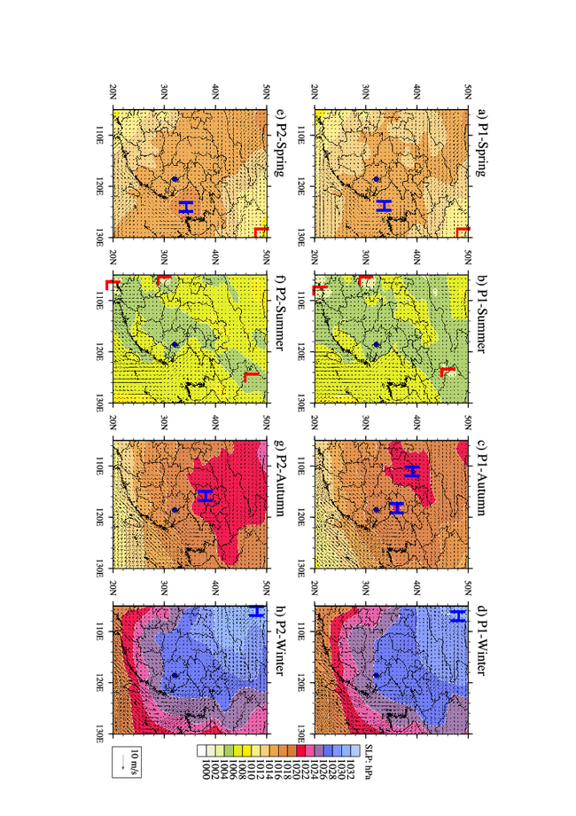 图2 两个阶段四个季节的气象场对比