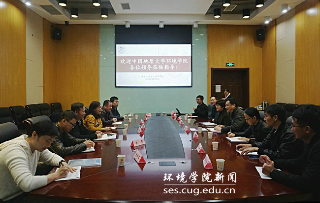 在南京信息工程大学,李素矿一行就学科建设、师资队伍、科学研究和人才培养等方面与大气科学学院院长陈海山、副院长卢楚翰等进行充分地交流,并参观气象台和大气探测基地。