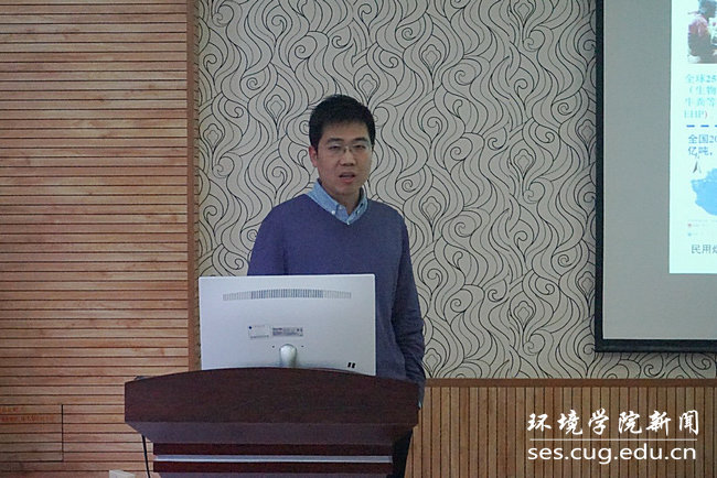 姜舟特任副教授作《Arsenic mobilization in a high arsenic groundwater revealed by metagenomic and Geochip analyses》的学术报告