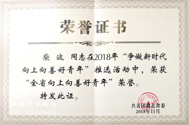 柴波教授荣获“全省向上向善好青年”荣誉称号。