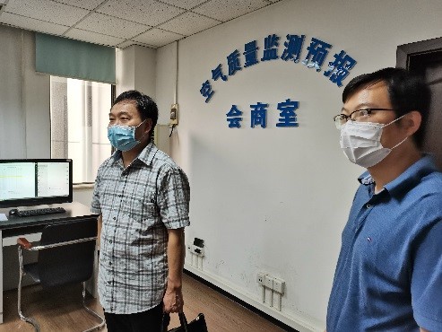 党委书记李素矿、校党委组织部副部长梁本哲实地参观市环境监测中心,并与监测中心党委书记、主任梁胜文交流。