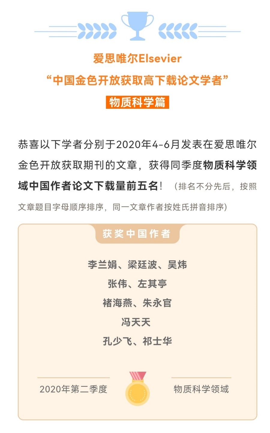 (编辑严丽莎)近日,爱思唯尔(Elsevier)中国金色开放获取高下载论文学者(2020年第二季度物质科学篇)榜单公布,来自国内5个高校、科研单位的10位学者入选该榜单,p站视频