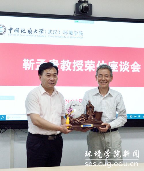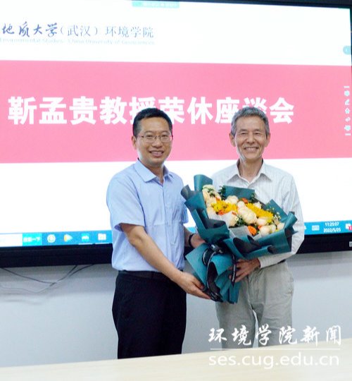 从1952年水文地质学科“一枝独秀”,到现在水-土-气-生-环“五朵金花”,都离不开像靳教授一样一代一代环境人的汗水与心血、传承与创新。他说,靳老师德艺双馨,40年如一日,始终保持爱岗、爱生、爱家、爱校、爱院的育人情怀,履行为党育人、为国育才的初心使命,培养一届届红专能优生态环保铁军。作为湖北教学名师坚持教书育人,积极投身“三全育人”综合改革;作为学科带头人,投身专业学科建设、教育教学管理、人才培养、科学研究和社会服务;作为共产党员,积极投身学院全国党建标杆院系“双创”工作,指导张国旗班党支部双创工作,是人师与经师的楷模,是大家学习的榜样。他勉励学院青年教师要不忘初心、牢记使命,传承红色基因,发扬“上善若水”精神,不断追求卓越,为研究型学院建设、“双一流”建设、党建标杆建设、“三全育人”综合改革等做出更大的新贡献,迎接党的二十大胜利召开,向建校70周年献礼。他希望靳教授持续关心关注学院今后改革发展,多为学院、系发展建言献策,多关心指导青年教师。祝愿靳教授退休生活红红火火,身体健康,阖家幸福。