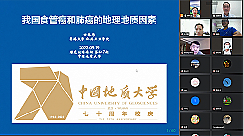 顾延生教授邀请,香港大学公共卫生学院田林玮副教授作了题为《我国食管癌和肺癌的地理地质因素》学术报告。顾延生主持报告会。