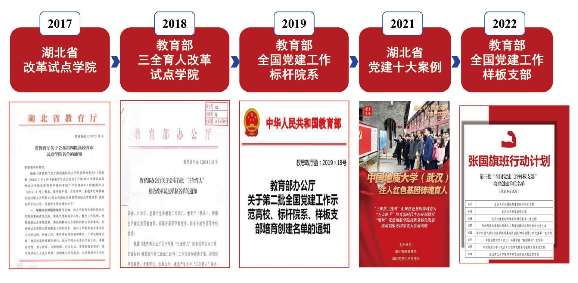 先后入选湖北省高校试点改革学院(2017)、教育部首批“三全育人”综合改革试点学院(2018)、第二批全国党建工作标杆院系(2019)、党建成果“注入红色基因铸魂育人”入选2019—2020湖北十大党建案例、“张国旗班”党支部入选第三批“全国党建工作样板支部”(2022)。办学七十年来,p站视频
