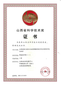 高旭波研究员、李成城特任研究员等人完成的“山西岩溶大泉水文地质调查新技术及水资源开发与保护”项目荣获2021年度山西省科技进步二等奖。我校为第二获奖单位。
