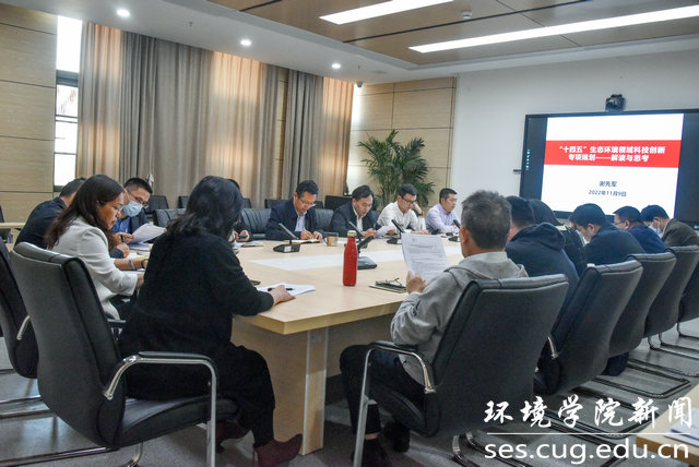 学报告、议规划、谈体会、谋发展。参会人员一致表示,学习贯彻党的二十大精神,落实《“十四五”生态环境领域科技创新专项规划》意义重大。通过学习,对国家重大战略需求有了更深层次的认识,科研思路进一步拓宽,未来科研方向更加明晰。学院必须加快有组织的科研、有组织的创新,组建跨学科专业、跨学院平台的科研团队,整合优势集中攻关,加强公共科研平台建设,为国家重大战略需求做出新的贡献。