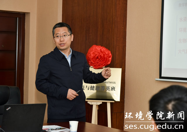 王焰新回顾了我校菁英班的发展历程。他指出,在坚持“四个面向”、服务国家战略的背景下,我校环境学科从“地学特色环境”向“环境健康”延伸的意义重大。依托“环境与健康菁英班”,与国科大杭州高等研究院建立以学生为载体的科教协同育人新模式,将丰富的科研资源转化成教学资源,强化双方科研与教育等方面合作,做出协同育人的标杆和品牌,深化人才培养质量,赋能经济社会高质量发展。