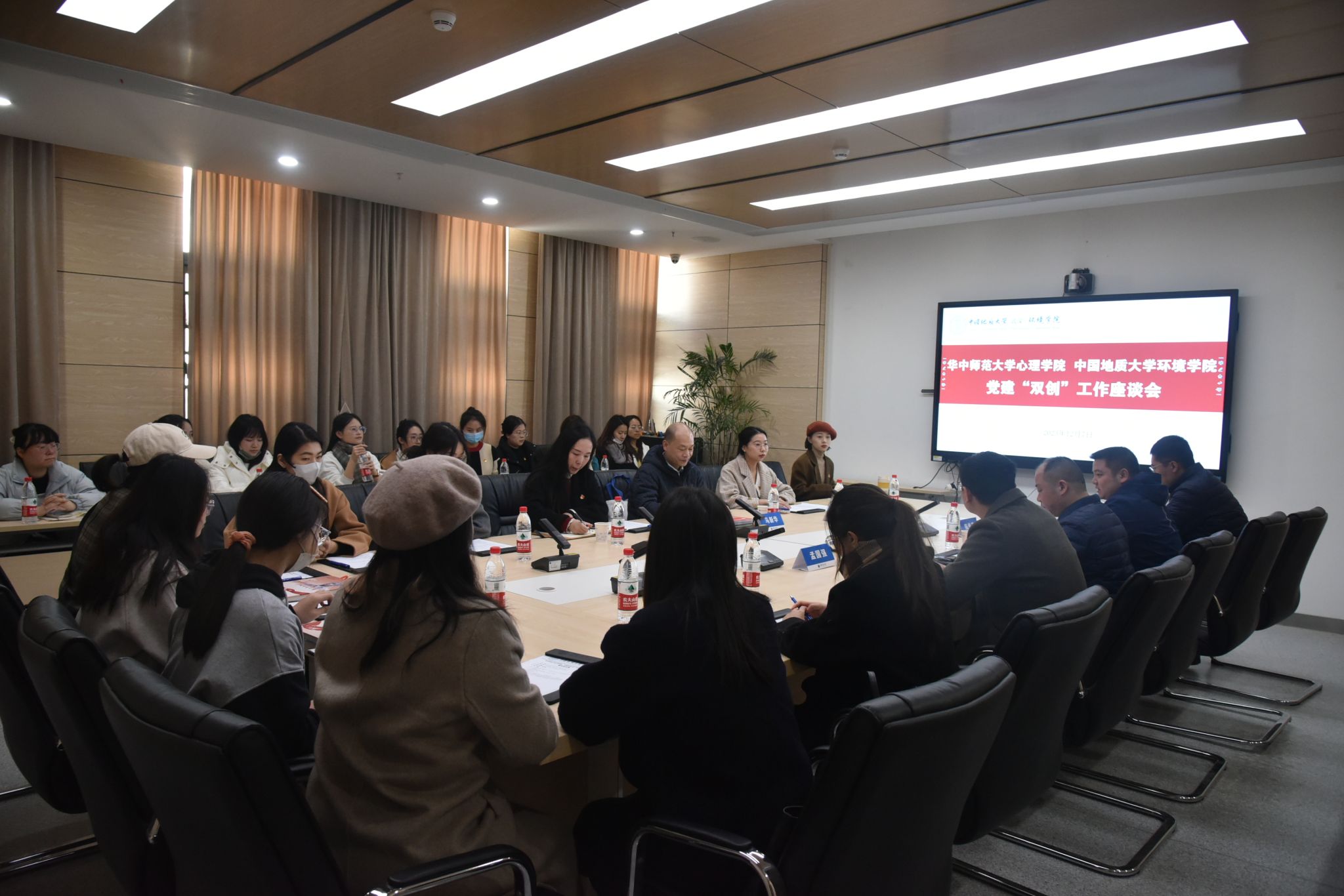 308会议室,华中师范大学心理学院党委书记马新华,研究生辅导员兼春雨服务队党支部书记张婷、研究生辅导员兼春雨服务队指导老师任嘉航以及学生党员代表等一行来p站视频