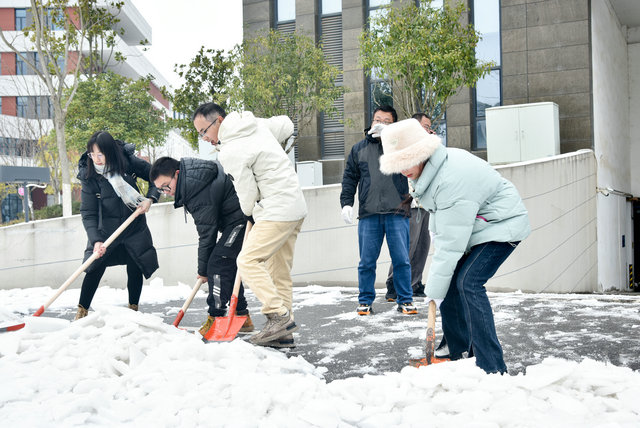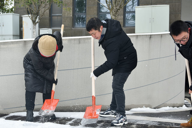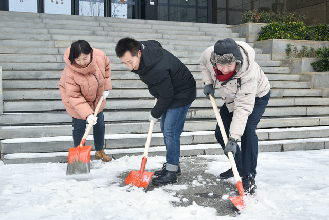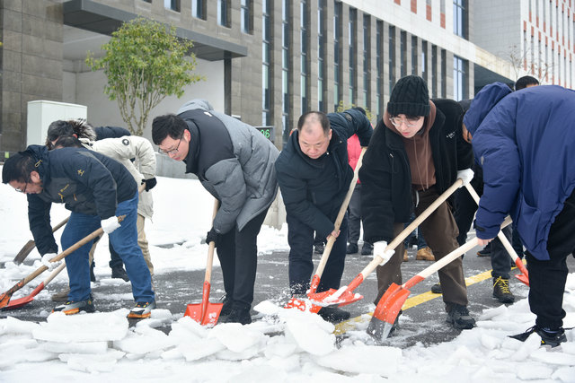 党委积极响应学校号召和部署要求,成立应对低温雨雪冰冻天气应急突击预备队,2024年2月23日上午,学院应急突击预备队和院师生开展铲冰除雪行动,清除科教楼四周边道路冰雪。