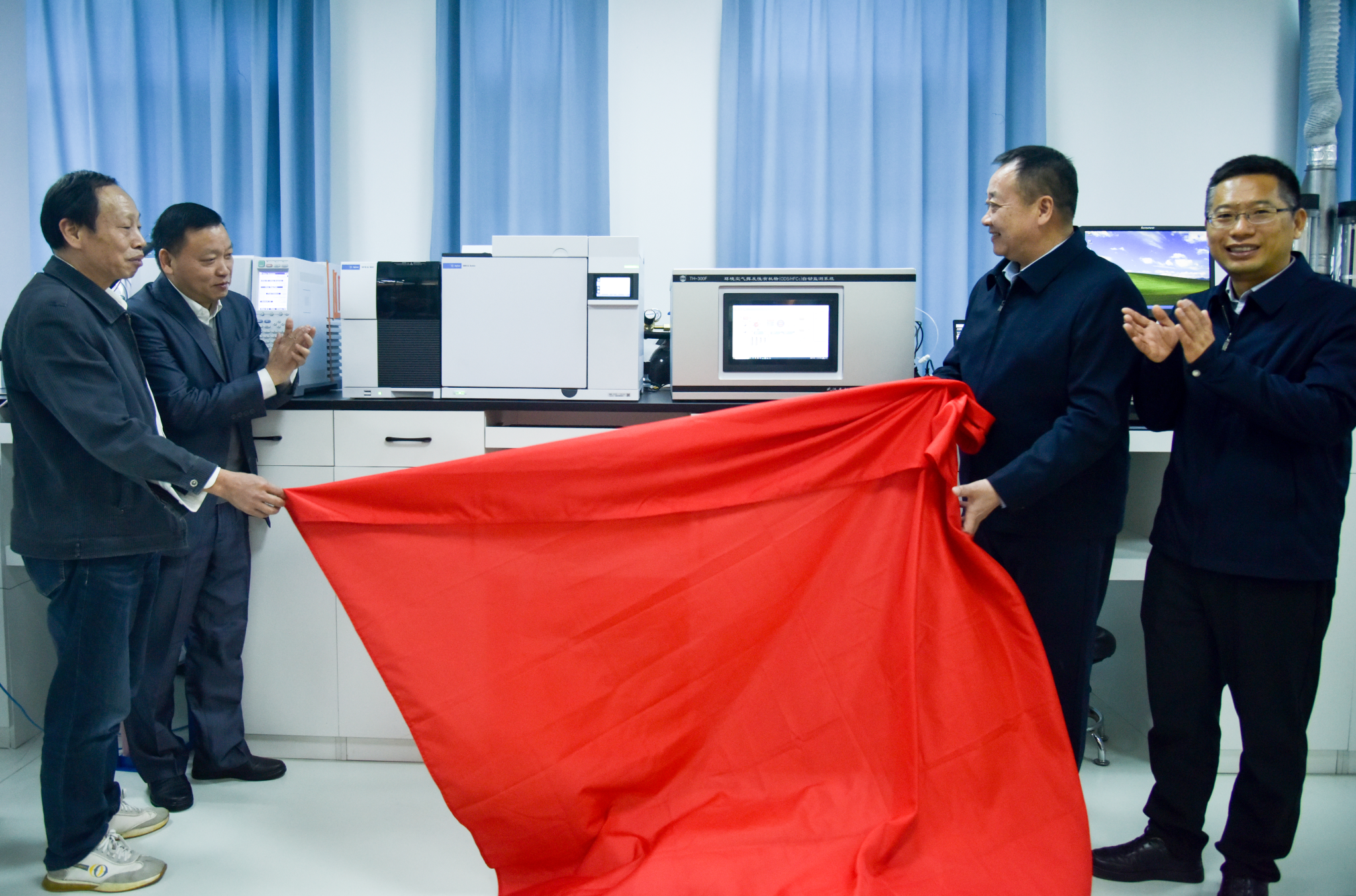 会后三方领导为ODS/HFCs自动监测设备揭幕,参观湖北省大气复合污染研究中心,并在p站视频