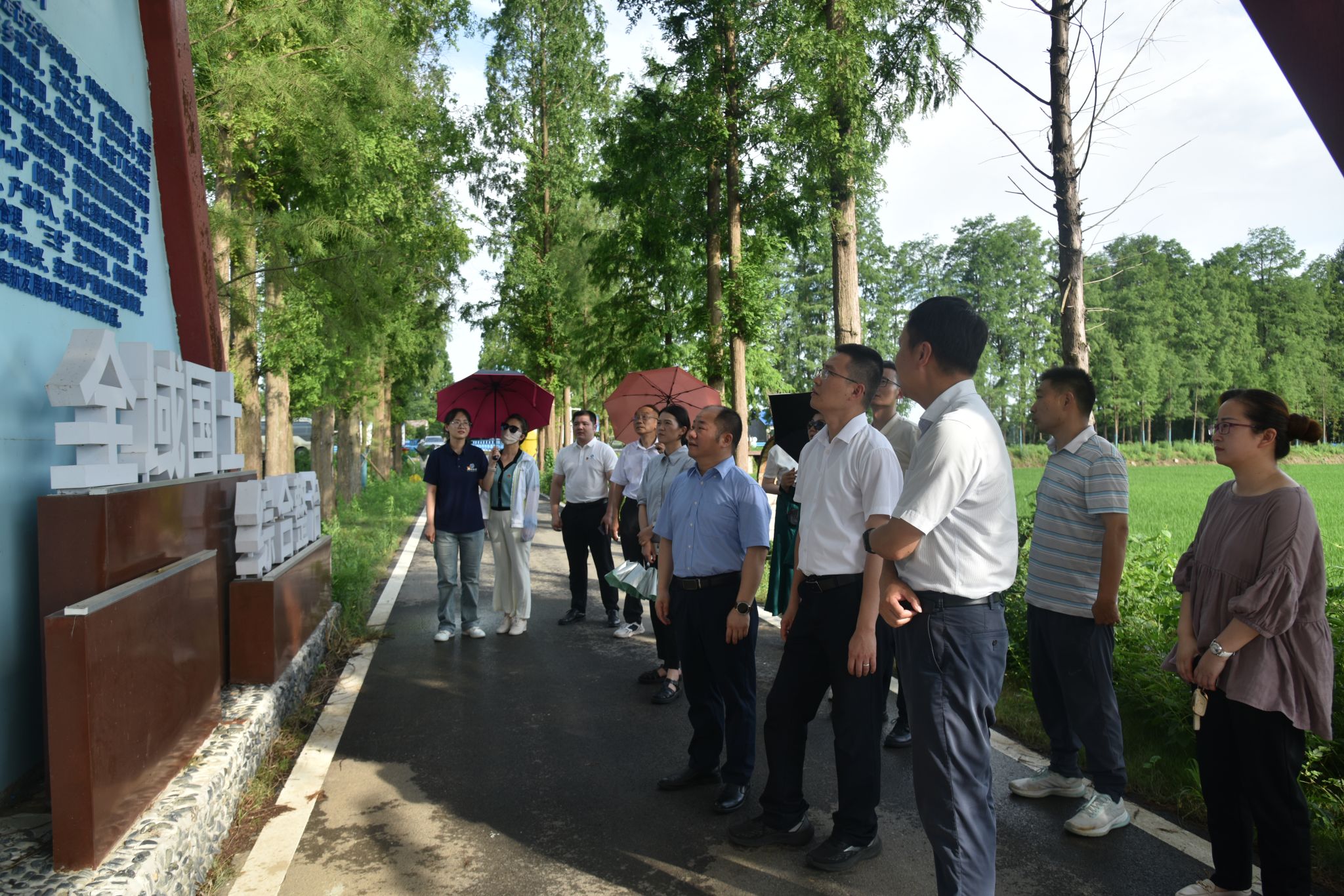 一行前往全国首批全域土地综合整治试点典型案例——湖北省孝感市孝南区朱湖办事处全域土地综合整治试点实地参观,调研该地在统筹优化生态、生产、生活环境和修复生态、增加耕地、促进增产增收方面的具体做法和成效。