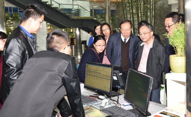考查专家组考察生物地质与环境地质国家重点实验室,常务副主任祁士华教授介绍有关情况。