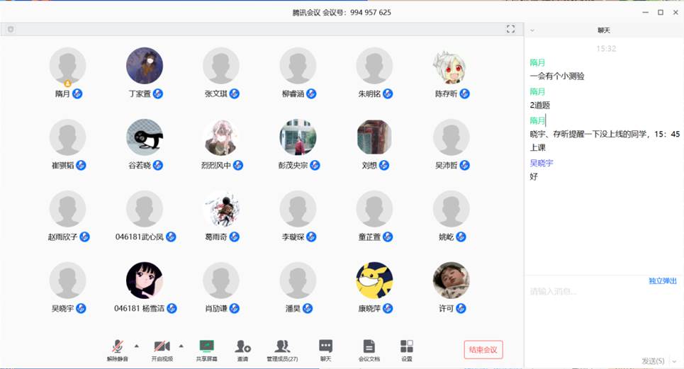 经过两次课的摸索、调整,最终课程以腾讯会议的形式进行点名、任务布置,然后上传录制MP4格式的上课视频,让学生带着思考题自行学习。除了课件和上课视频,还给学生分享相关的扩展知识的网站。为督促学生学习,在课后提醒学生,下次课将会进行一次课堂小测验,并及时上传下次课的课件供学生预习。另外,在爱课程网站上,搜索到与本门课相关的两门共享课,及时分享给学生,供参考,希望学生能充分利用网上资源进行学习。