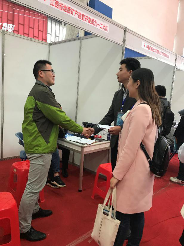 招聘会现场,在上海九澄环境工程有限公司展位前,副书记朱继认真询问了公司的岗位需求、待遇情况、发展前景等,研究生工作部副部长陈慧老师同学院校友单位江西省地质矿产勘查开发局九一二大队负责人深入交流,并向其推荐p站视频