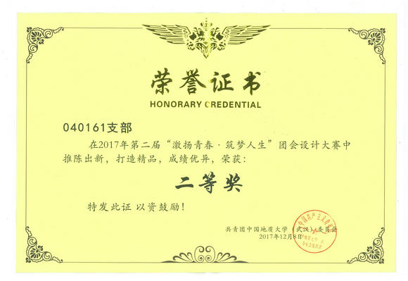 040161团支部团会设计大赛荣誉证书