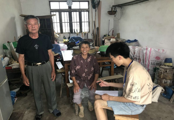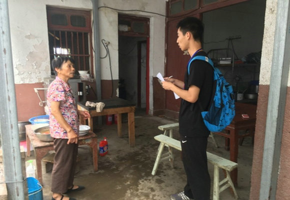 图为:实践队员向苏州陶桥村村民询问能源消耗量 田小义 摄