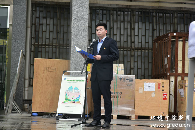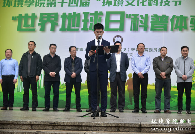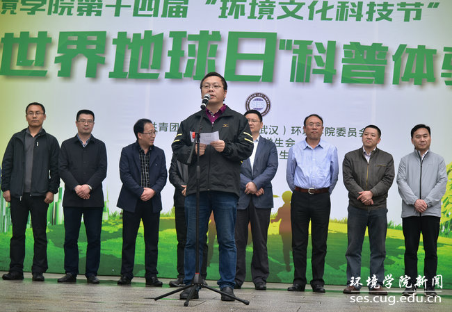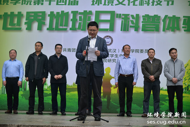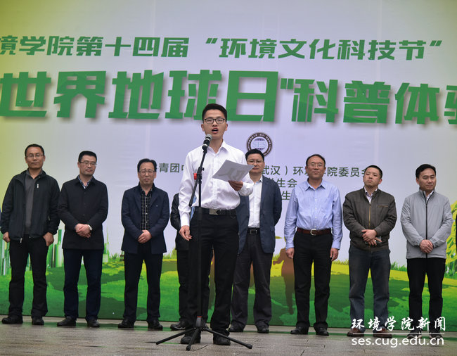 马腾致辞。他代表学院感谢为此次活动付出辛勤工作的师生。他说,促进和实现人与自然的和谐发展是生态文明建设的目标,是中国地质大学办学使命,更是p站视频