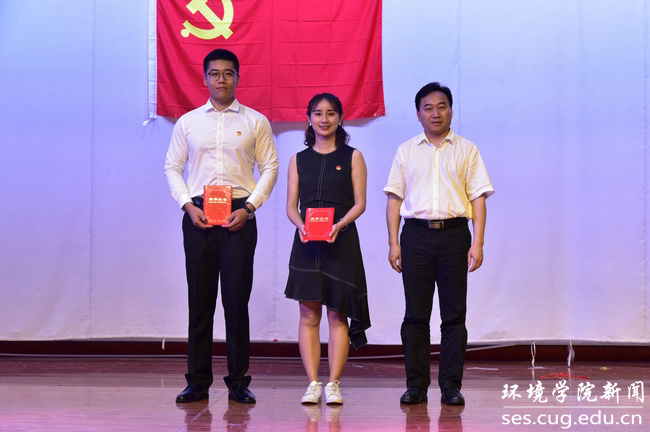 李素矿为李璐、杨子斌、傅悦、毛康民、张勤萧、柳璨、许向南、郝时光、董一君等九位优秀学生党员颁发证书。