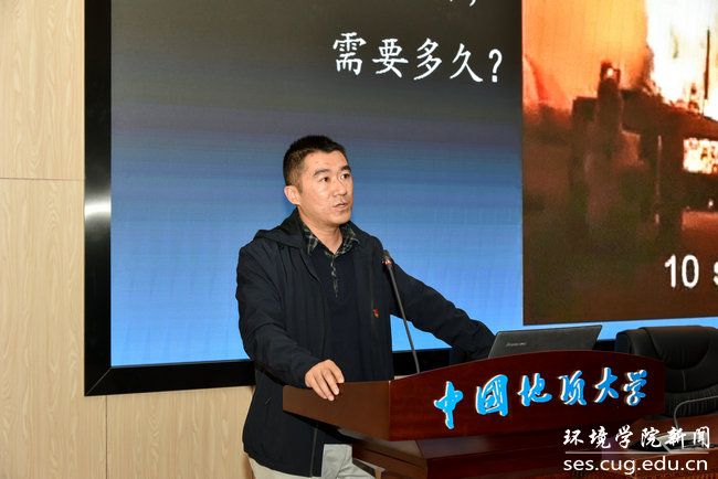 李洋首先介绍了未来城校区的地理位置及治安状况,同时结合我校保卫处日常工作与同学们分享了发生在各高校的盗窃、诈骗、失火等案件,用一个个真实生动的案例敲响了同学们心中的警钟。