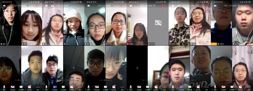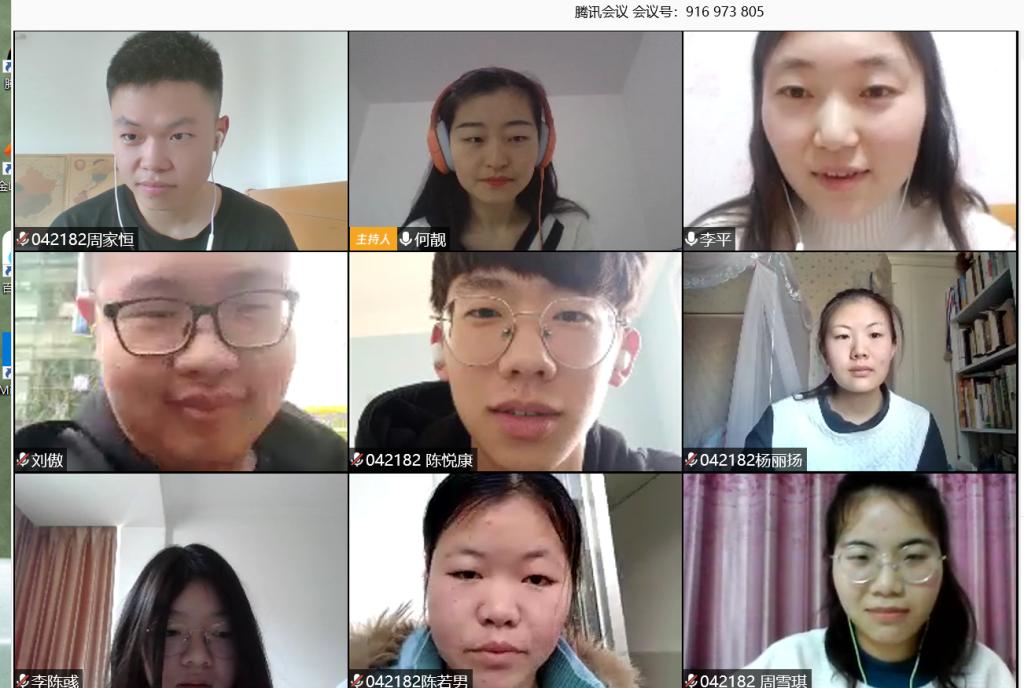 云端相会,心灵相通。为了使“居家隔离”的学生更加科学合理地“宅在家”,各班级充分利用网络平台为同学创造“面对面”交流机会。本科班级共开展网络班会27次,中加合作办学班开展线上“云做菜”美食分享活动,鼓励同学们充分利用在家的时间,掌握基本家务的生活技能,做到“高级宅”。043181班学生开展“心相聚·战疫情”线上心理主题班会,向同学们介绍新冠肺炎的症状及识别、错误舆论澄清等相关知识,缓解焦虑情绪,保持健康阳光的积极心态。