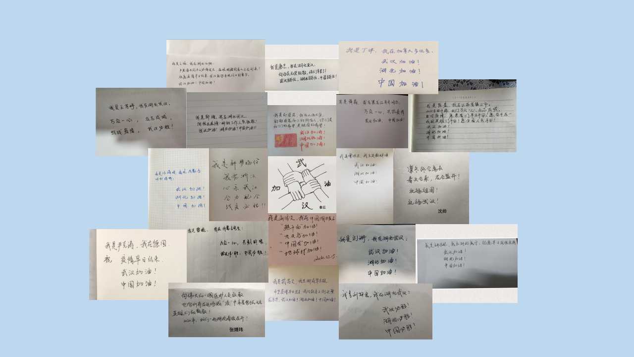 初级团校29名团员青年,联合召开“南北同心,共克时艰”主题团日,交流学习心得,共同制作10余幅应援图片,祝福武汉,为中国加油。在“众志成城同抗疫,青春聚力勇担当”主题团日上,邀请奋斗在抗疫战斗中的学生家长、青年志愿者在线分享抗疫故事,以身边人、身边事、身边情激励着青年奋进。