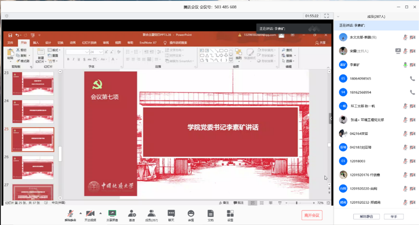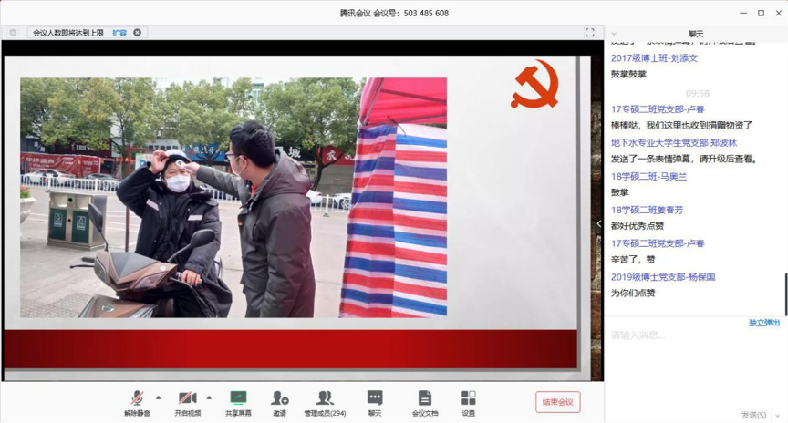 参会师生党员在腾讯会议室聊天框热烈讨论