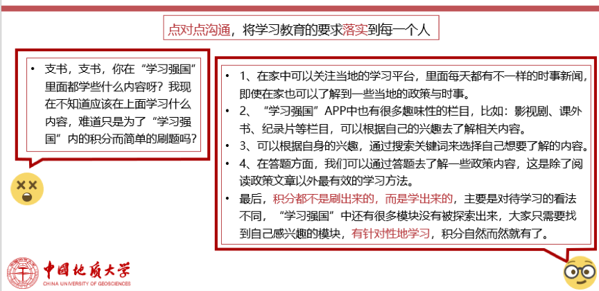 四、点对点沟通,将学习教育的要求落实到每一个人