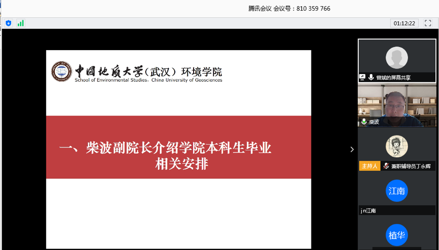 柴波副院长介绍学院本科生毕业相关安排。他希望老师们能够加强线上指导,同学们能够加强与指导老师的交流,共同努力,保证顺利毕业。