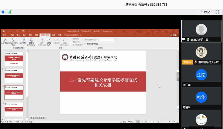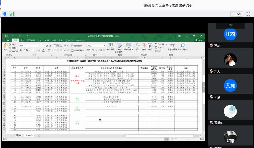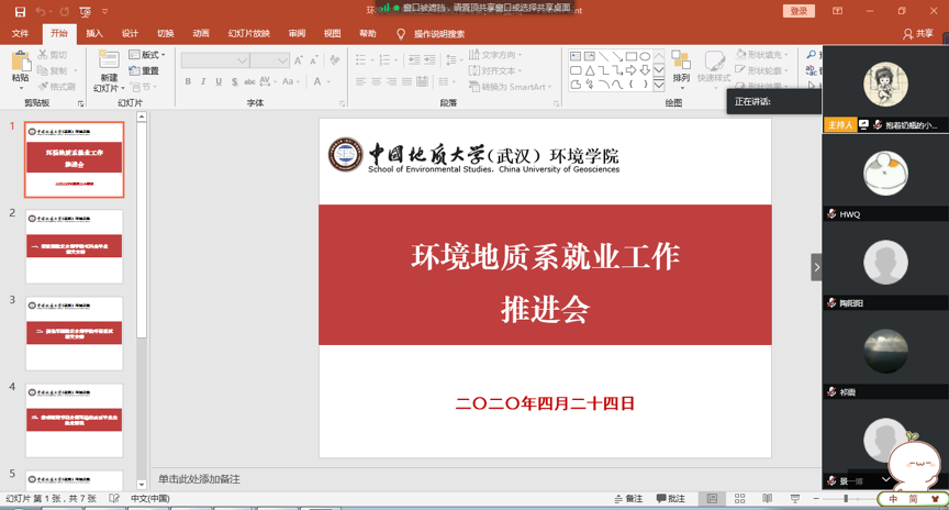 2020届毕业生就业工作推进方案》文件精神,进一步深化全员就业的工作格局,4月24日下午,环境地质系召开就业工作推进会。学院副院长柴波、谢先军,党委副书记姜明敏、环境地质系全体教师及毕业生参加会议。