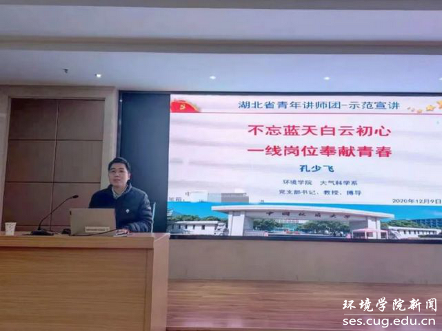 孔少飞老师以《不忘蓝天白云初心一线岗位奉献青春》为题,结合自己多年来的科学创新研究和深入理性思考,从党的十九届五中全会精神要点、我国及湖北大气污染防控形势及对策、青年学者成长之路、不忘初心一线岗位献青春、青年寄语等方面,用严谨的思维、通俗易懂的语言、翔实的图表数据、精彩的经典案例,以及自己的励志成长经历解读了党的十九届五中全会精神,带领大家学习十九届五中全会提出的系列新的重要思想、重要论断、重大举措,全面理解新发展阶段、新发展理念、新发展格局,坚定大家爱护生态环境、打赢蓝天保卫战的信心决心,激励大家找准自身定位,点燃青春梦想,练就过硬本领,汲取成长力量,在全面建设社会主义现代化国家新征程中建功立业。作为省“青年宣讲团”走进宜昌的首场示范宣讲,孔少飞老师的宣讲报告反响强烈,《三峡晚报》、“青春宜昌”等媒体平台均予以宣传报道。