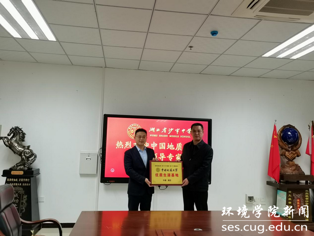朱继代表学校为沙市中学授牌“优质生源基地”,他对长期以来沙市中学为我校输送大批优秀学子表示感谢。今年恰逢沙市中学80周年校庆,他祝愿学校在新的发展阶段再创辉煌,期待通过优质生源基地平台的建设,进一步深化交流合作,吸引更多优秀学子投身美丽中国、宜居地球建设,携手培养更多卓越人才。