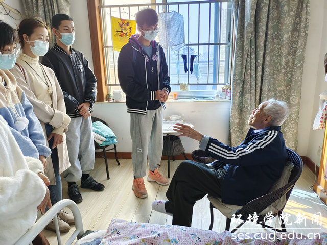 在探望过程中,志愿者们遇到了一位曾从事地质工作的老前辈,他为志愿者们讲述了当年他工作时的各种艰苦条件和在工作中遇到并克服过的困难,勉励大家要能吃苦,不怕累,因为地质工作是一件充满困难的工作,作为地质大学的学生,要艰苦朴素地完成各项任务。在与这位老前辈的交流中,志愿者们感受颇多,受益匪浅。