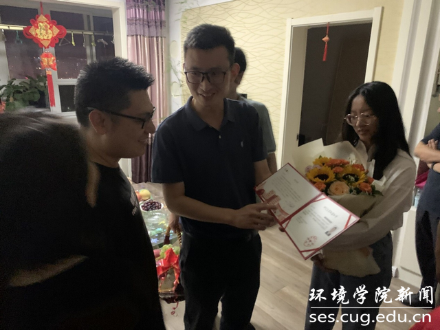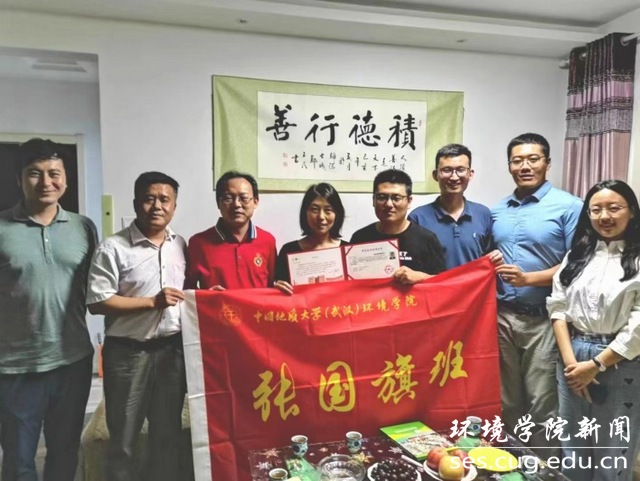 通讯员卢秀颖、车金凝、赵恩民 摄影韩鹏  编辑耿婧)2022年7月5日晚,p站视频 2022级研究生新生张云飞(校友张国旗之子)收到了校长王焰新院士亲笔签发的70周年校庆特别版研究生录取通知书。晋城市水务局水文水资源事务中心副主任李慧清,中国地质大学(武汉)就业指导处副处长陈华清,p站视频 党委副书记王海锋,p站视频 研究员高旭波,p站视频 研究生辅导员赵恩民和“张国旗班”党支部支委韩鹏、车金凝一行前往山西省晋城市为张云飞递送录取通知书。