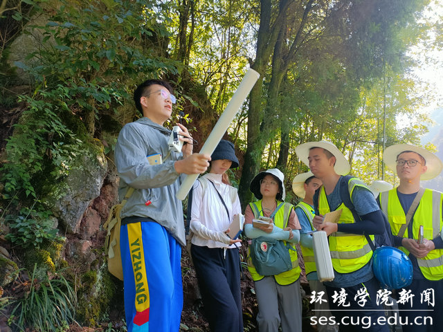 通讯稿/摄影各教学班  编辑耿婧)041191教学班: 7月8日—10日,041191教学班完成了月亮包金矿、链子崖和高家溪三条路线的野外实习,学习到了①尾矿库选址原则的要求②采矿过程可能出现的地下水污染问题③危岩体的调查内容、标准④危岩体的防治工程⑤岩溶地貌的调查、成因和水文地质意义分析等专业知识,同学们普遍提高了野外工作能力,增进了同窗友谊,锻炼了迎难而上的意志品质,培养了水文地质思维。
