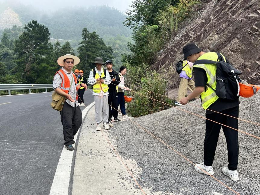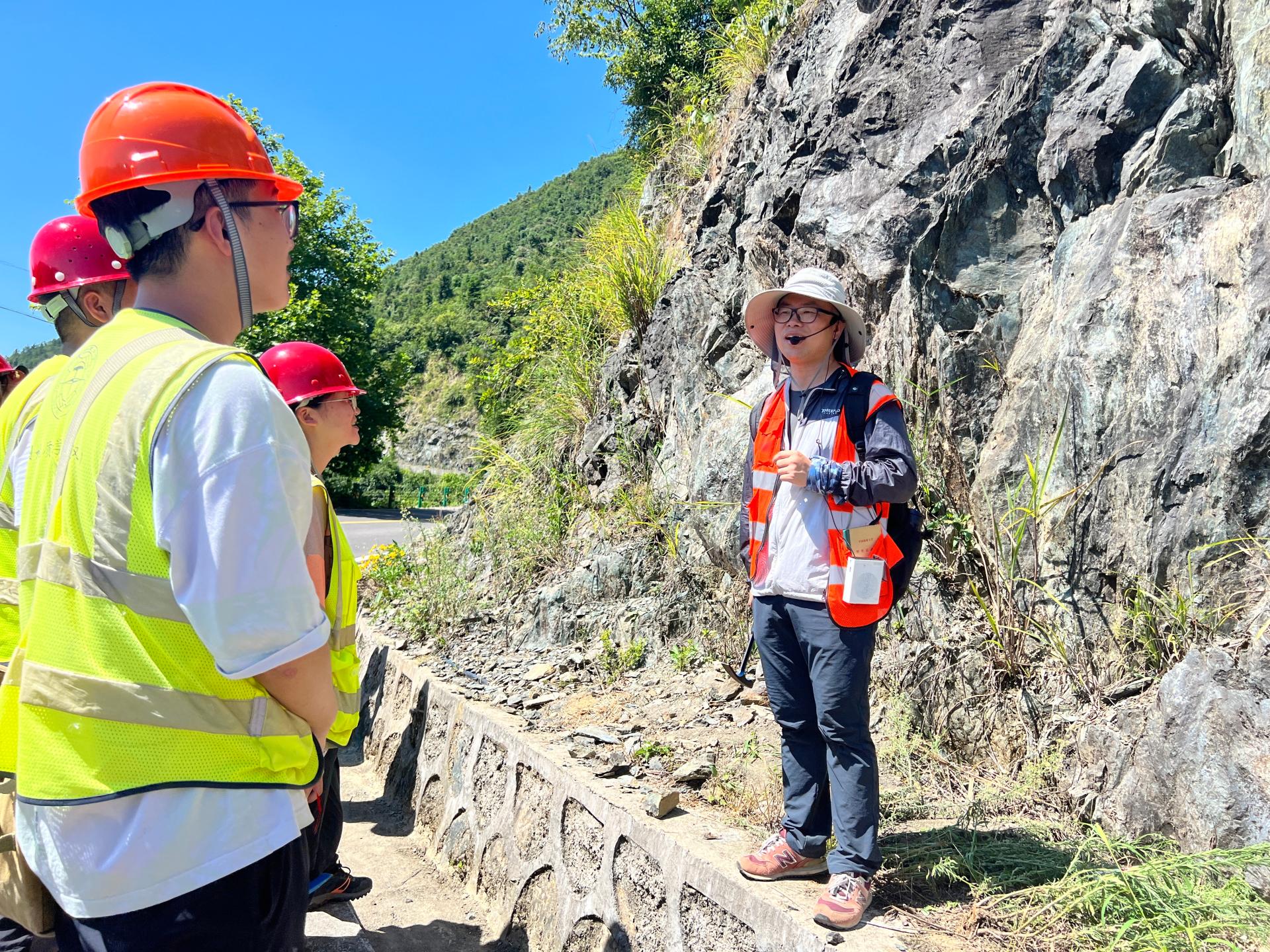 8月10日,李素矿一行参加芝茅公路踏勘和地层实测剖面野外实习路线。与水文与水资源专业041201、041202和045201z同学们一起听取黄琨老师对黄陵岩体的讲解,和同学们一起听王涛老师讲解如何开展莲沱组地层的实测剖面工作。并与带队老师和同学们亲切交流,询问同学们的学习收获和知识掌握情况,并认真倾听同学们的实习感受。他鼓励同学们,一定要重视野外实习实践,将理论学习在实践中检验,将所学知识应用于社会的生产实际中,为生态文明建设和环境事业的发展做出贡献。